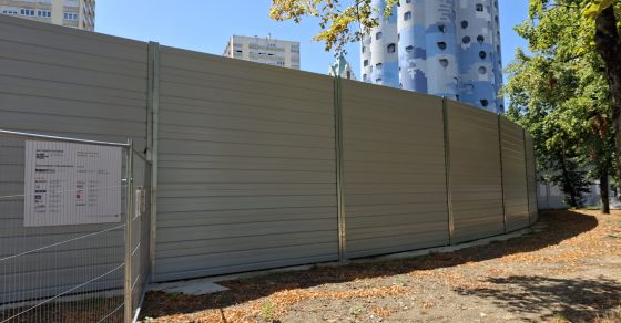 MICE heeft zojuist 2500 m² metalen geluidsschermen geplaatst langs de toekomstige Lijn 15-west in Nanterre en Courbevoie (92) voor VINCI /Société Grands Projets.